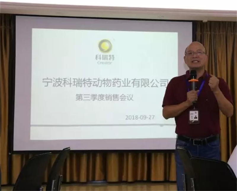 2018年9月27日,寧波科瑞特動物藥業(yè)有限公司在寧??偛空匍_2018年第三季度銷售工作會議??迫鹛乜偨?jīng)理郭瑞忠、行政副總劉瓊鮮、營銷副總王先明、總工程師王亞佩、生產(chǎn)副總于自勛、銷售總監(jiān)姚欣,會同銷售系統(tǒng)全體人員共同出席本次會議。會議針對2018年第三季度銷售工作取得的成績和不足進行詳細的總結(jié)和檢討;吸取成功的工作經(jīng)驗,明確下一階段的工作任務(wù)。