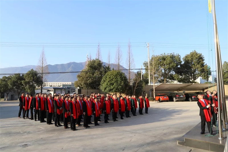 2019年1月27日8時08分,寧波科瑞特動物藥業(yè)有限公司高層領(lǐng)導(dǎo)和全體員工在辦公樓前舉行升旗儀式。