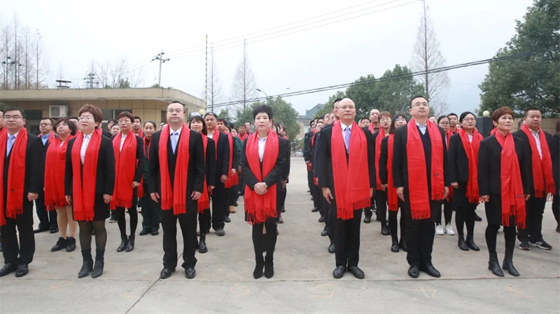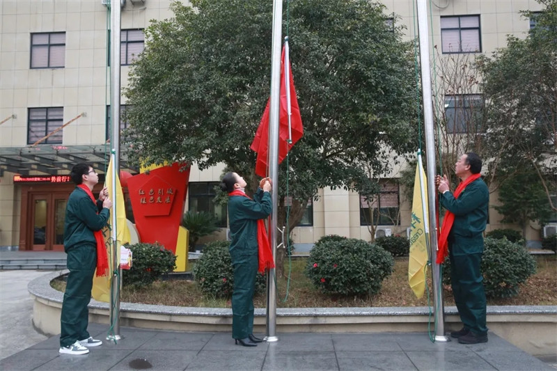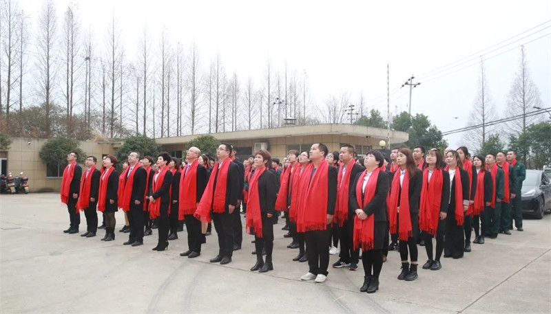 2021年1月5日8時18分,寧波科瑞特動物藥業(yè)有限公司高層領導和全體員工在辦公樓前舉行升旗儀式。