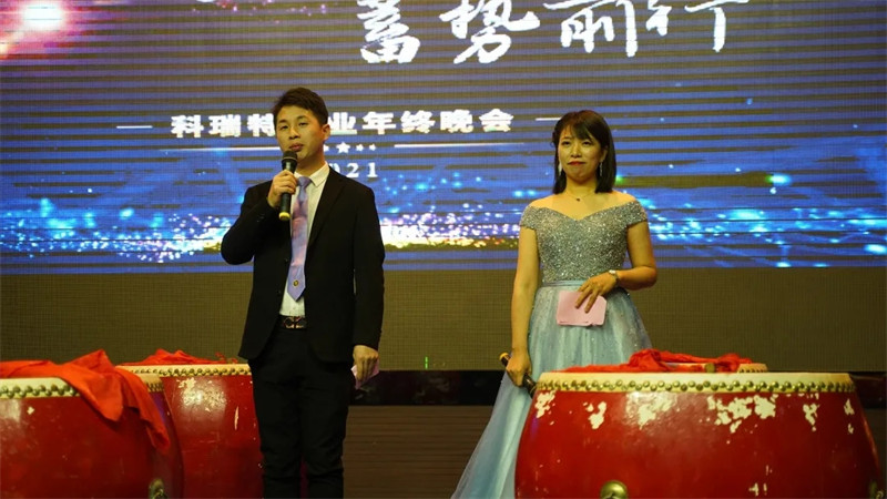 2021科瑞特迎新晚會以倒計時視頻,拉開序幕。科瑞特創(chuàng)始人、董事長兼總經(jīng)理郭瑞忠先生為晚會致辭,郭總代表公司,向在場的各位各位嘉賓以及科瑞特全體家人們,表示衷心的感謝!同時向公司員工全體家屬致以誠摯的問候!晚會上郭總回顧2020展望2021,在激情澎湃的致辭中把晚會開端推向高潮!