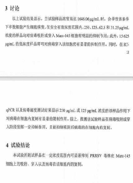 第三方實(shí)驗(yàn)證明,園蘭清可以在阻斷PRRSV與巨噬細(xì)胞上結(jié)合、穿入巨噬細(xì)胞及抑制病毒在巨噬細(xì)胞內(nèi)的復(fù)制及釋放三個維度上起效。且劑量較低,后效應(yīng)維持時間較長。因此,園蘭清在阻斷病毒增殖復(fù)制和擴(kuò)散方面,效果優(yōu)于替米考星和泰萬菌素。