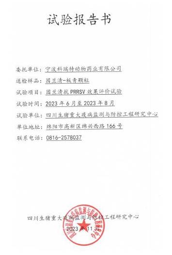 2023年11月20日,收到綿陽職業(yè)技術(shù)學(xué)院四川生豬重大疫病監(jiān)測與防控工程研究中心發(fā)來的試驗報告,公司委托的園蘭清對藍(lán)耳雙陰豬攻毒保護(hù)試驗獲得圓滿成功。