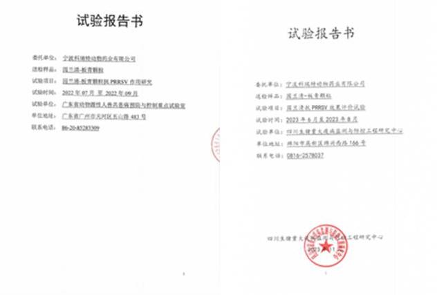 2023年6~8月,寧波科瑞特委托四川生豬重大疫病監(jiān)測與防控工程研究中心,進(jìn)行了《園蘭清防控PRRSV效果評價試驗(yàn)》,試驗(yàn)表明園蘭清具有較好的免疫調(diào)節(jié)作用,能顯著降低PRRSV所致的免疫抑制。