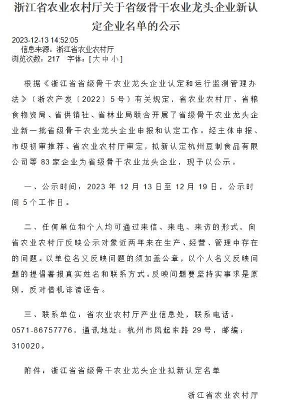 近日,根據(jù)《浙江省省級(jí)骨干農(nóng)業(yè)龍頭企業(yè)認(rèn)定和運(yùn)行監(jiān)測管理辦法》(浙農(nóng)產(chǎn)發(fā)〔2022〕5號(hào))有關(guān)規(guī)定,省農(nóng)業(yè)農(nóng)村廳、省糧食物資局、省供銷社、省林業(yè)局聯(lián)合開展了省級(jí)骨干農(nóng)業(yè)龍頭企業(yè)新一批省級(jí)骨干農(nóng)業(yè)龍頭企業(yè)申報(bào)和認(rèn)定工作。經(jīng)主體申報(bào)、市級(jí)初審?fù)扑]、省農(nóng)業(yè)農(nóng)村廳審定,寧波科瑞特動(dòng)物藥業(yè)有限公司成功認(rèn)定為“省級(jí)骨干農(nóng)業(yè)龍頭企業(yè)”!