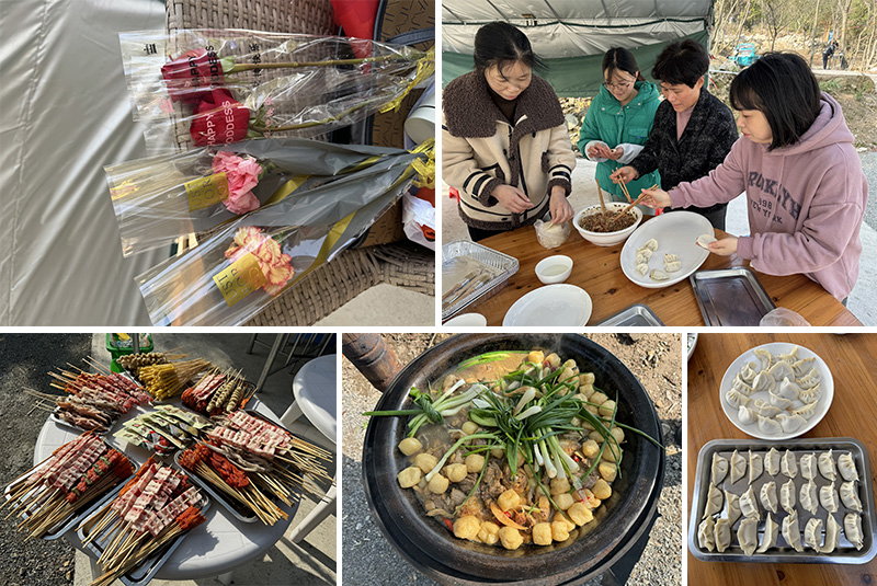 到達(dá)目的地后,大家馬上熱熱鬧鬧開始準(zhǔn)備午飯,有清洗食材的、有生火的、有切菜的、有包餃子的、有生炭燒烤的.....大家有說有笑地忙碌著,談笑間聊聊如何平衡家庭和工作的關(guān)系,分享一下各自的經(jīng)驗(yàn)和心得,釋放著生活帶來的各種壓力,大家其樂融融,一片歡聲笑語。