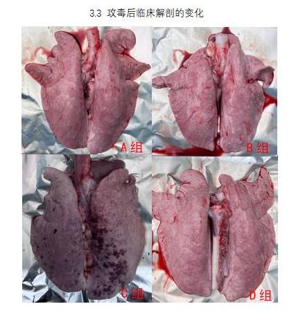 大體解剖更為直觀的看出,用藥組的肺大體病理變化明顯比對照組輕微,因此可以更為直觀的體現(xiàn)出園蘭清的在預防和治療豬藍耳病的上意義。